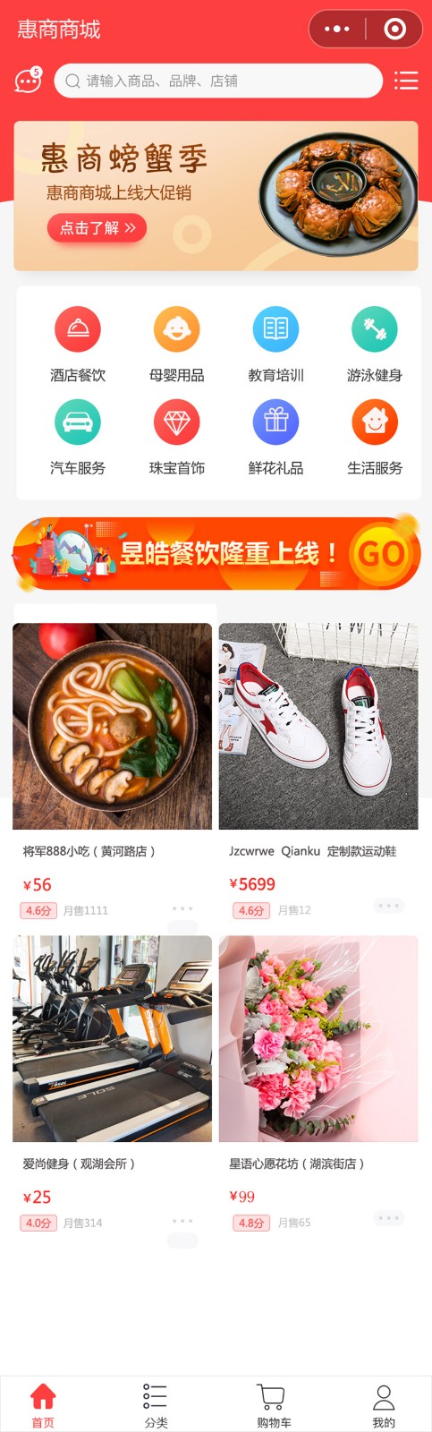 寧夏惠商憑借其敏銳的商業(yè)嗅覺,聯(lián)合昱皓軟件開發(fā)了一款基于本地服務(wù)的商城小程序,讓用戶足不出戶即可買到需要的商品并且可以預(yù)約各種生活服務(wù);