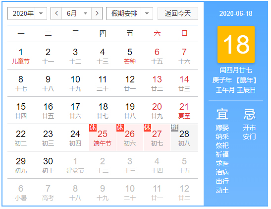 值此端午節(jié)來臨之際,根據(jù)《自治區(qū)人民政府辦公廳關(guān)于2020年部分節(jié)假日安排的通知》 我司將于2020年6月25日至27日放假,共3天。6月28日(星期日)正常上班。